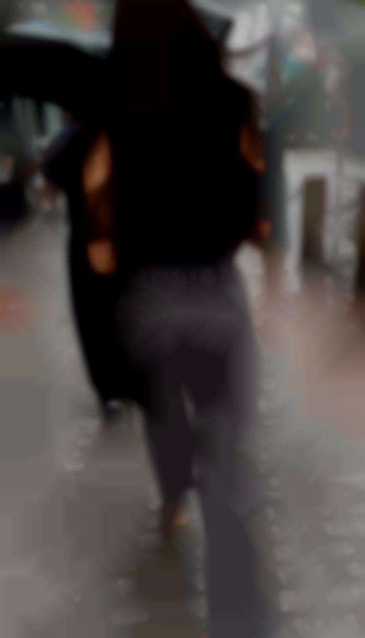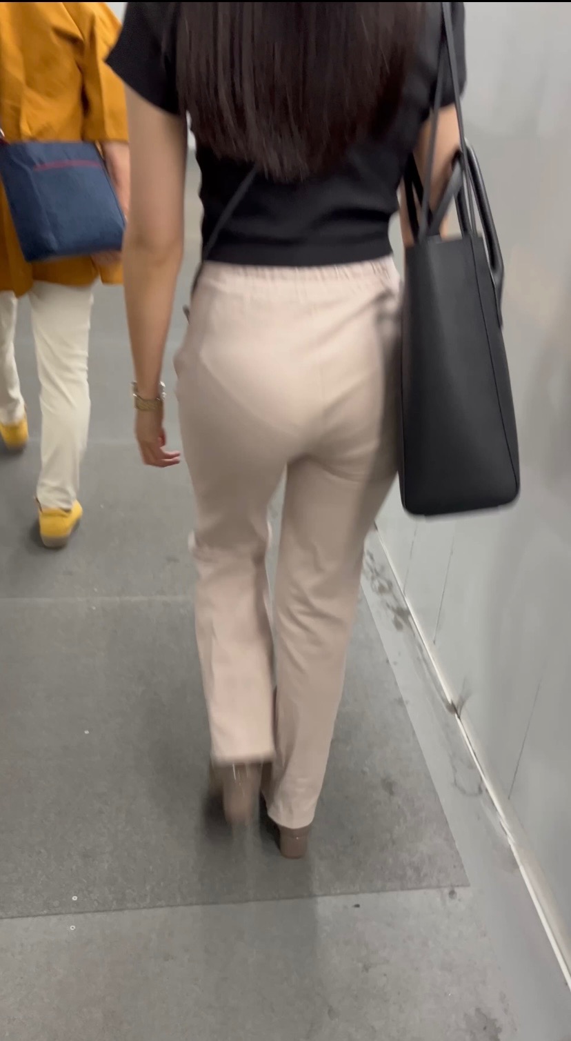 エロい服装の女子大生の浮き出るプリ尻パン線