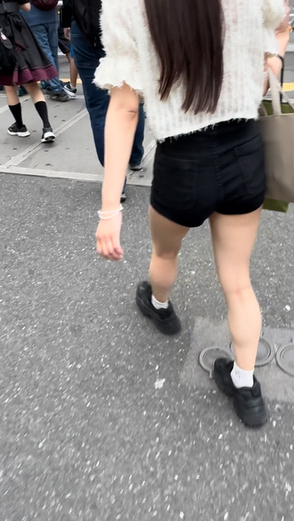 収録人数2名!パンティのラインが丸見えのプリ尻のお姉さんとピタピタのデニムのショーパンのお姉さんが登