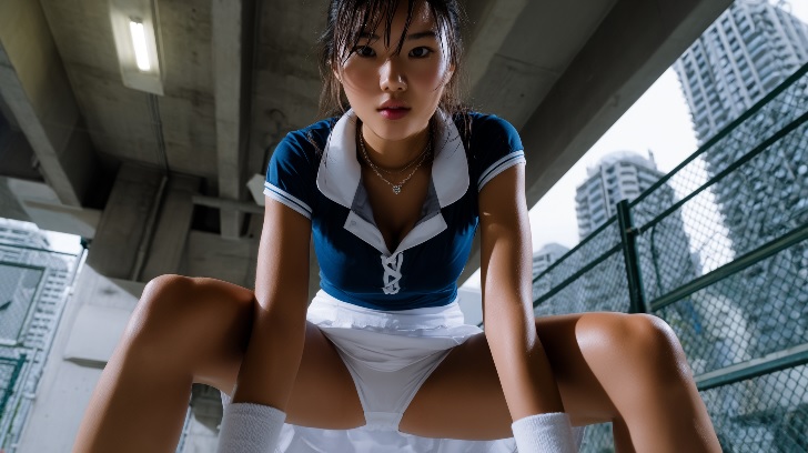 高画質・高品質な画像生成AIにより、超ミニスカのテニス少女たちが思わず開脚してしまい、股間が丸見えにな