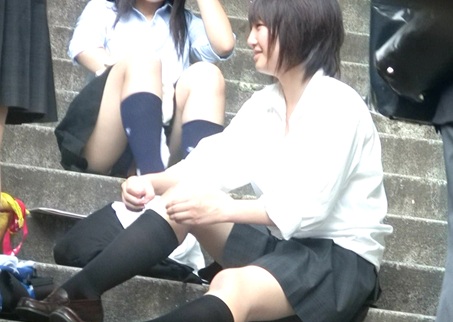 座りっ娘 068 友達と座っている制服コスの子たち