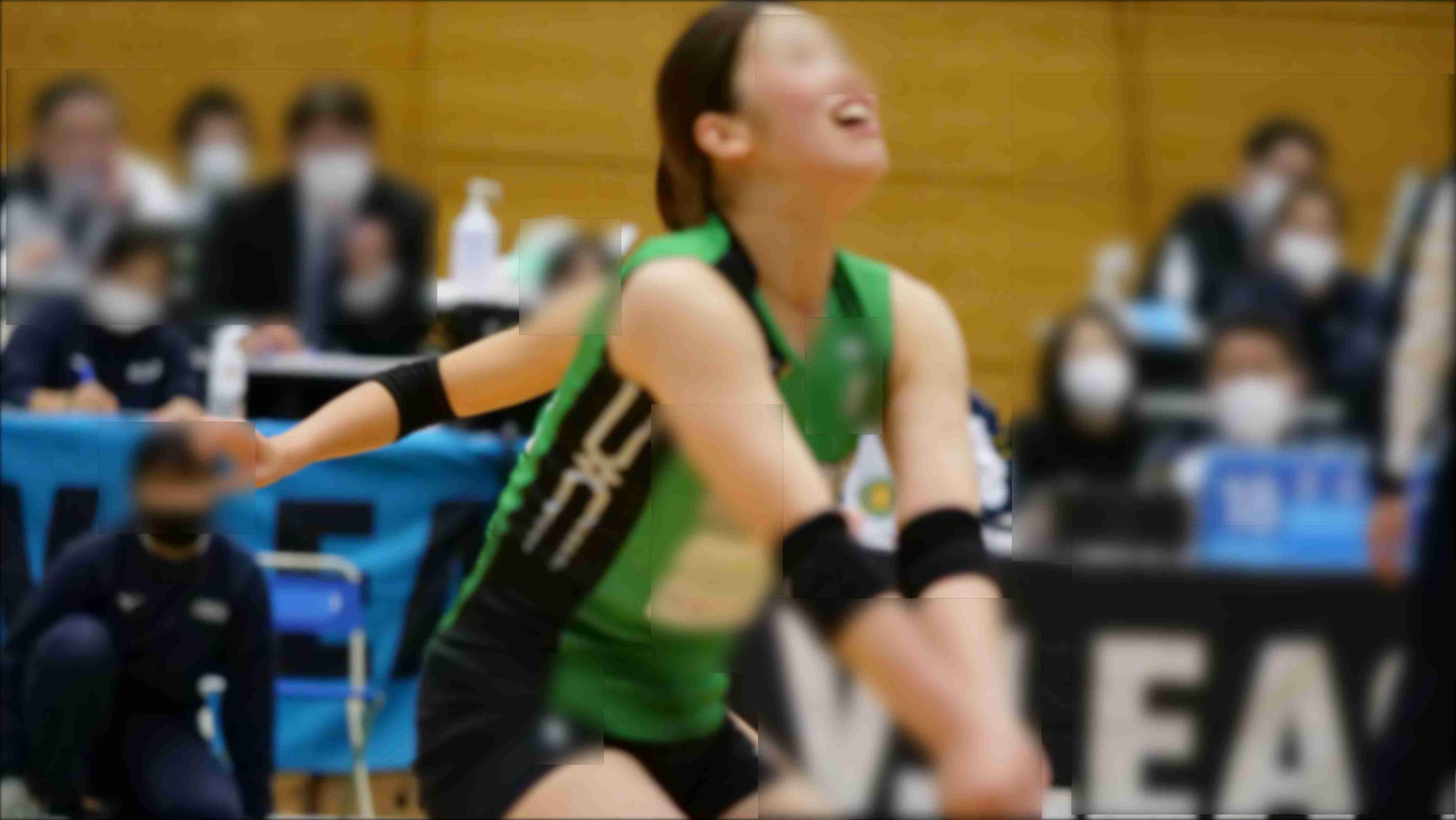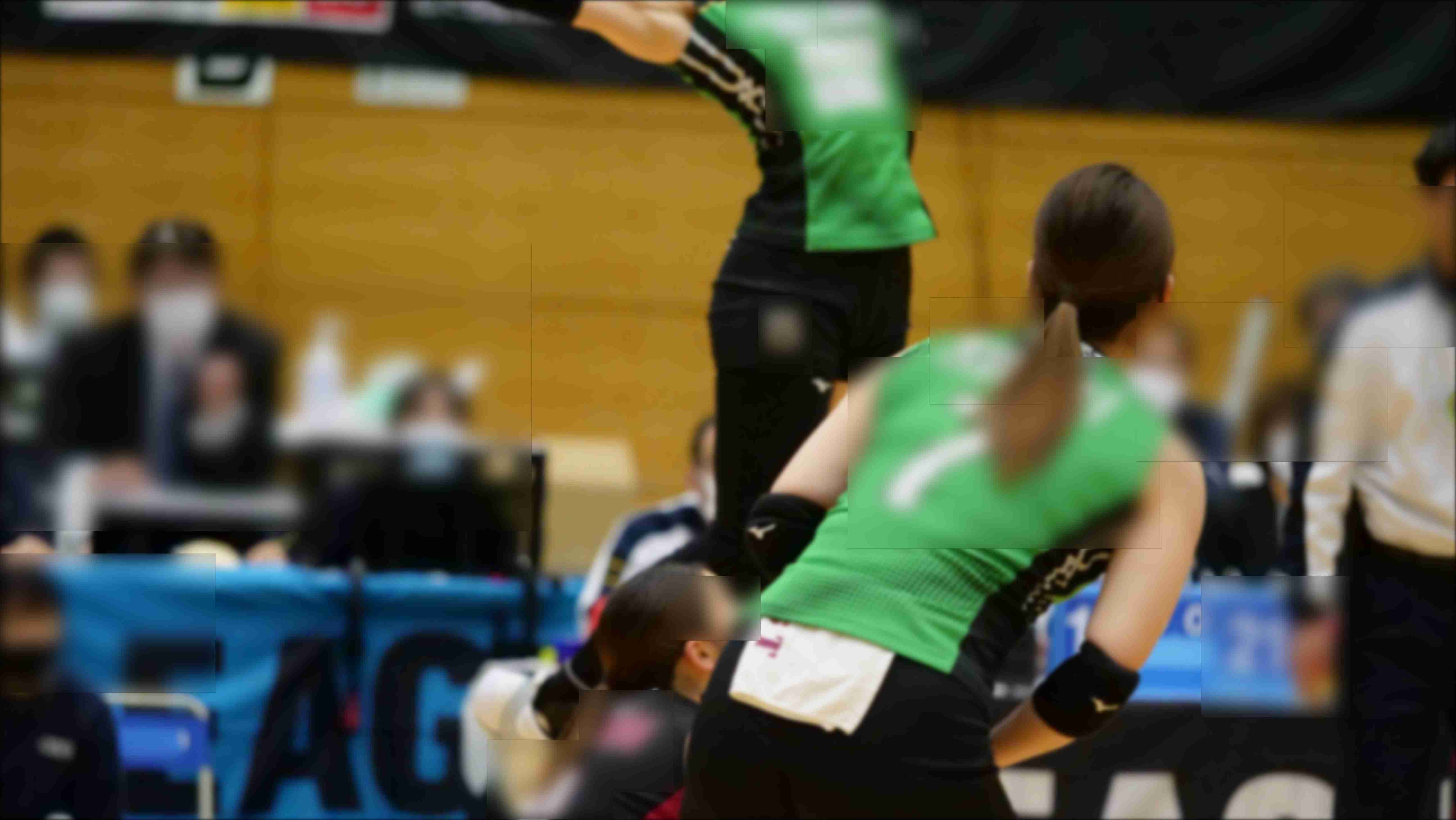 緑と黒を基調としたユニフォームが身体にぴたりと張り付き、ジャンプの瞬間に浮かぶヒップの丸みと太ももの張