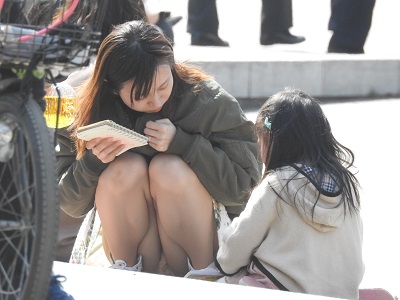 - お座りお姉さん発見102!!大変です!!パンツが見えてますよ