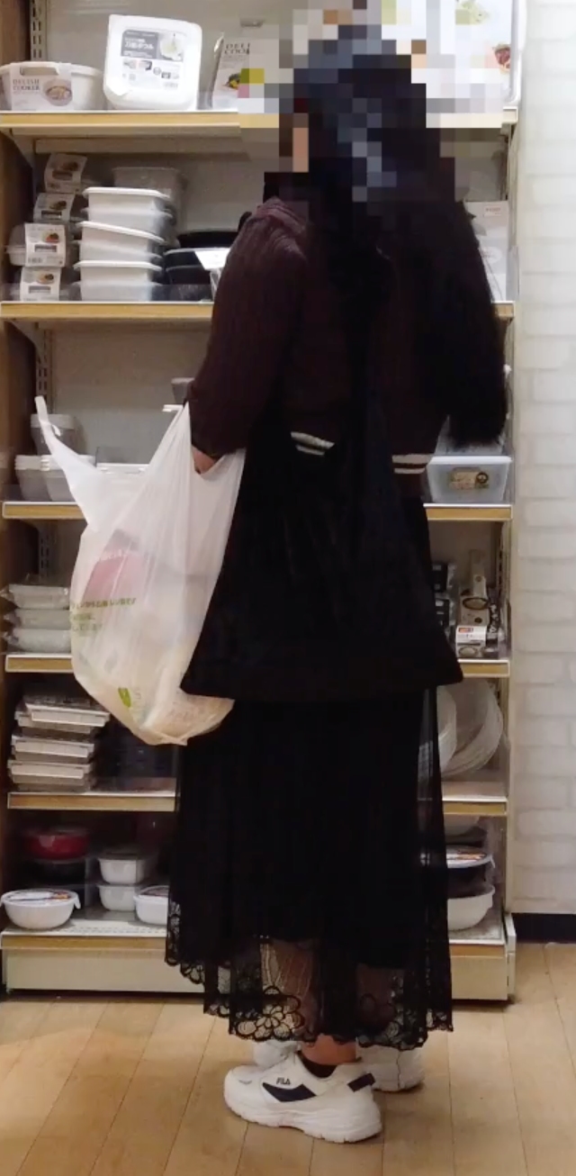 距離感も膝下のローアングルから何とか太もものスカート丈アングルまで近づいたりとお楽しみ頂けるかと思い