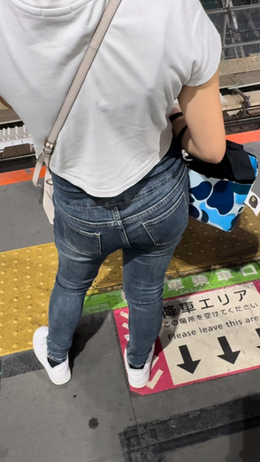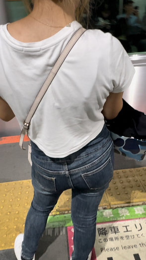 1人目(表題)は淡いブルーのデニムに白トップスのお姉さん