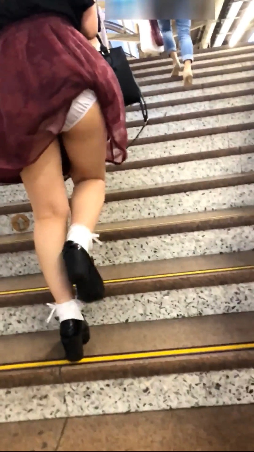 階段を上るシーンでは、ますますスカートがめくれて見所