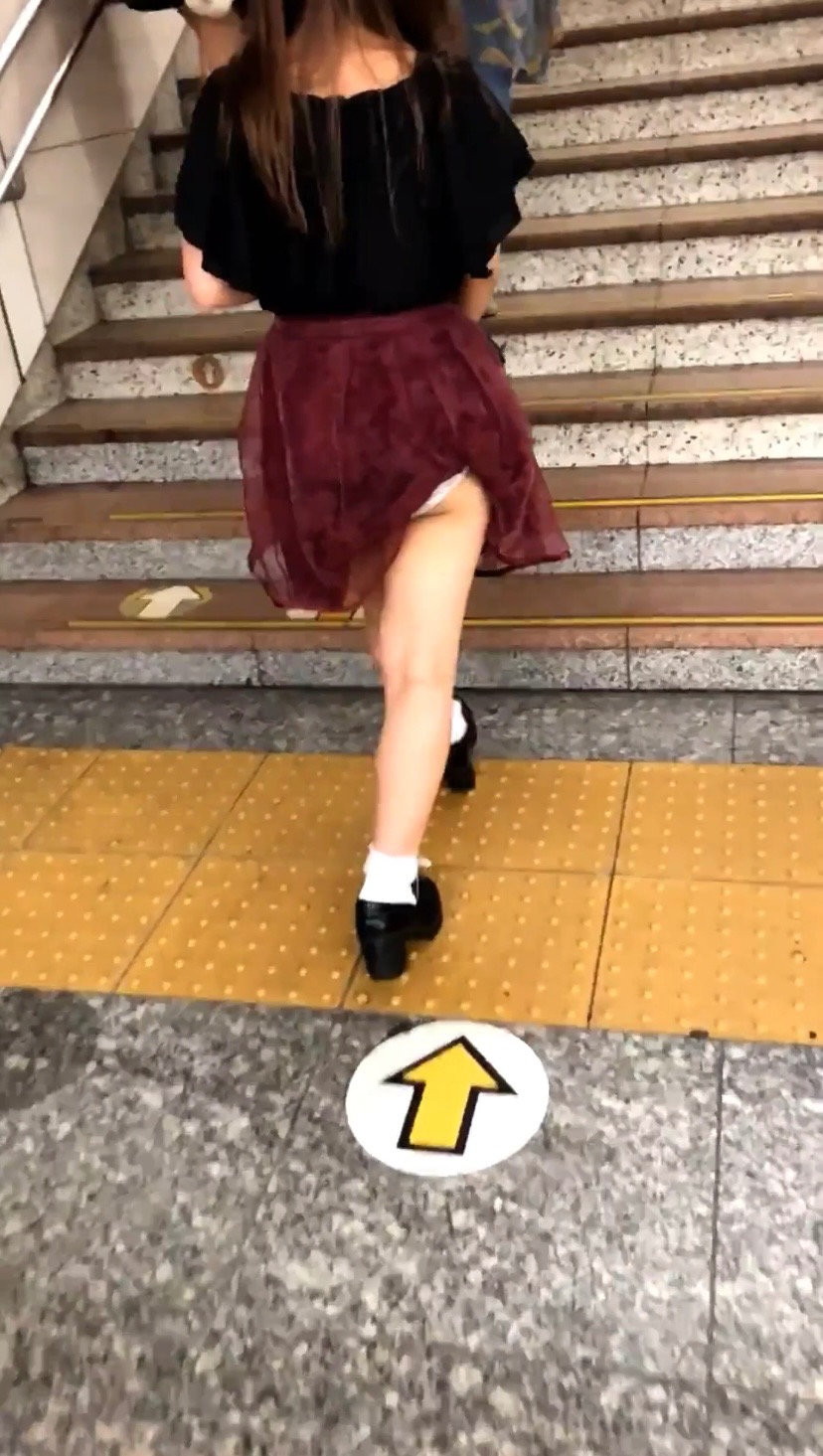 した。後ろを歩いているだけで白の生パンツが丸見え状態