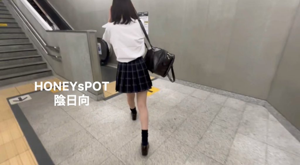 待ち伏せしてエスカまで追跡。シャツがはみ出しており、