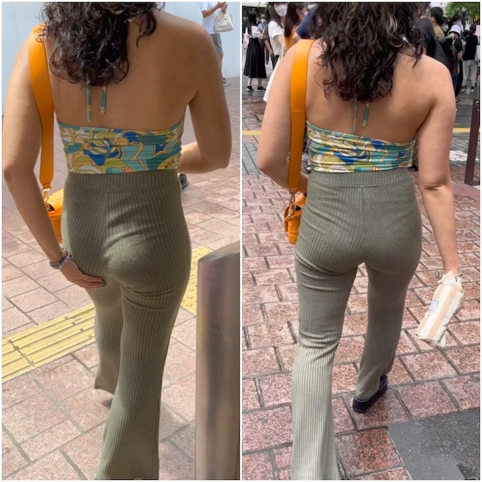 モッコリと豊満に膨らむヒップラインに浮かび上がる
