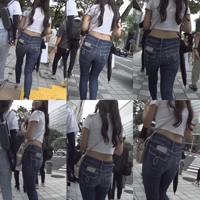 スキニーデニムを穿いたスタイル抜群の美女のみを収録*